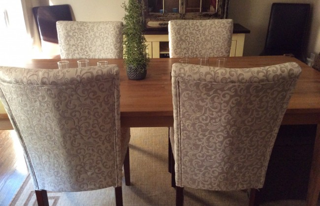 Hi everyone! I hope your summer has been keeping you busy with some relaxation thrown in. Mine sure has! I’ve managed to add a few new touches around the house mainly to try and brighten things up and just give things a fresh look. My dining room is one of the darker rooms in my house so I thought some lighter chairs to replace the dark green ones I’ve had for years might brighten it up. I found these on overstock at a good price and I think they help a little in the brightening department. Here’s a before pic: