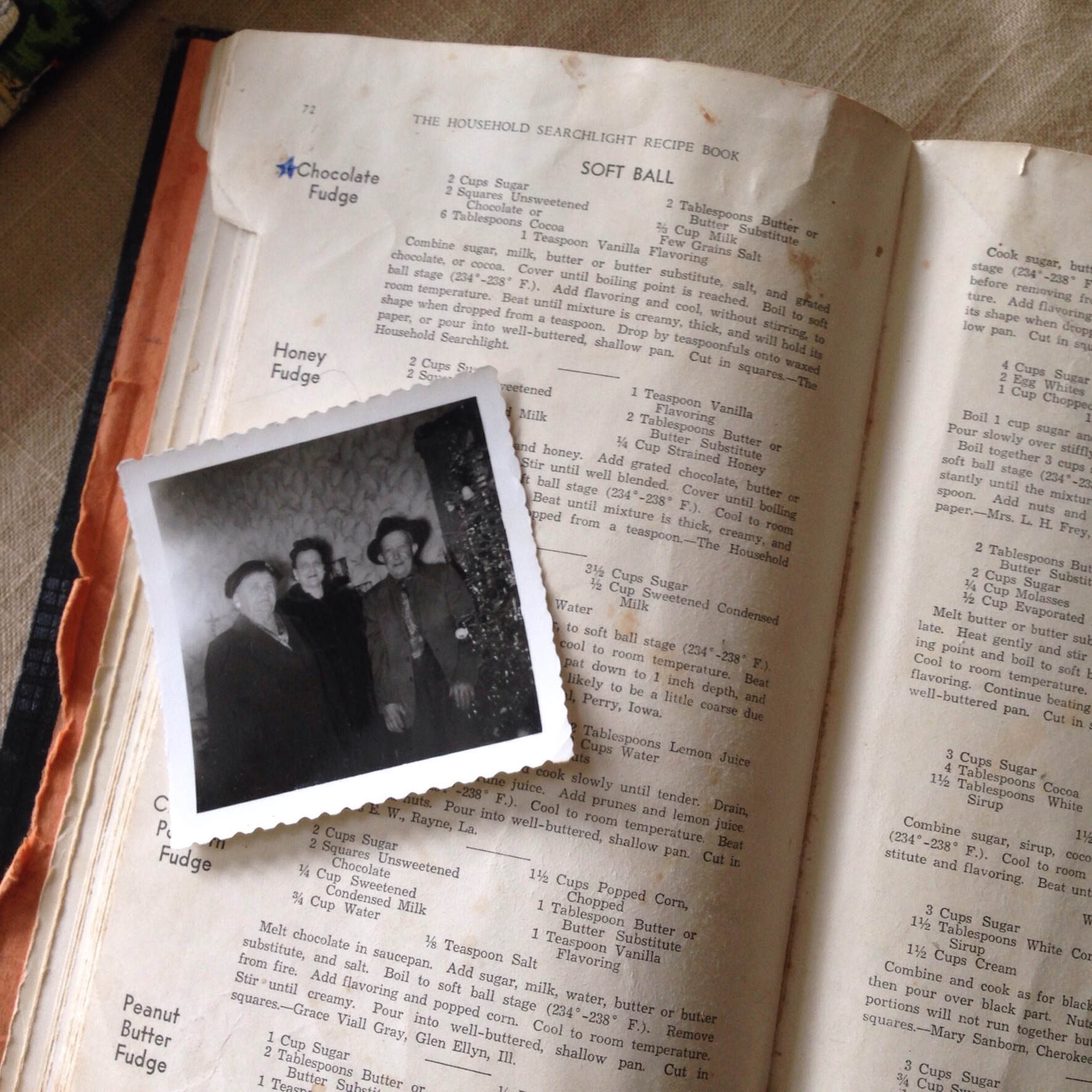 My Mom only had one cookbook, Household Searchlight, copyright 1934. Our favorite recipe to make together was Chocolate Fudge. You can tell by the well-loved smudges on the pages. Sometimes it would turn out perfectly, other times we would laugh and just pour it over ice cream. Lovely memories.