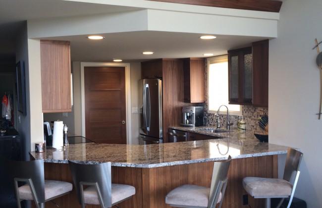 The old kitchen was closed off and not well thought out. When you opened the dishwasher, you could not get into the cabinets above or next to it for unloading. Plus, the corner area was not accessible at all. With the dropped ceiling and half wall, it felt a bit like a cave.