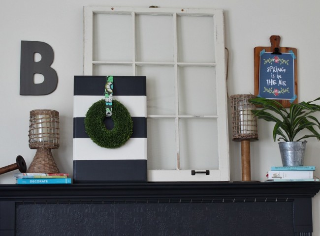 The weather isn’t very springy here today, we actually got a dusting of the white stuff, but I’ve had fun styling my mantel for spring!