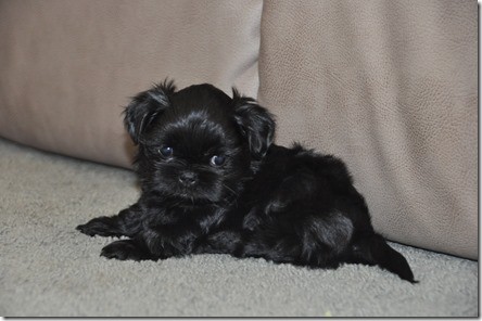 Yes, we often hear how rare the all-black (dark brown) coloring is. His brother is also all dark with just a bit of white on the tummy. The breeders said this was the first litter that had all-blacks. Teddy was the runt and is especially tiny…our other two guys are more average at 13 lb.